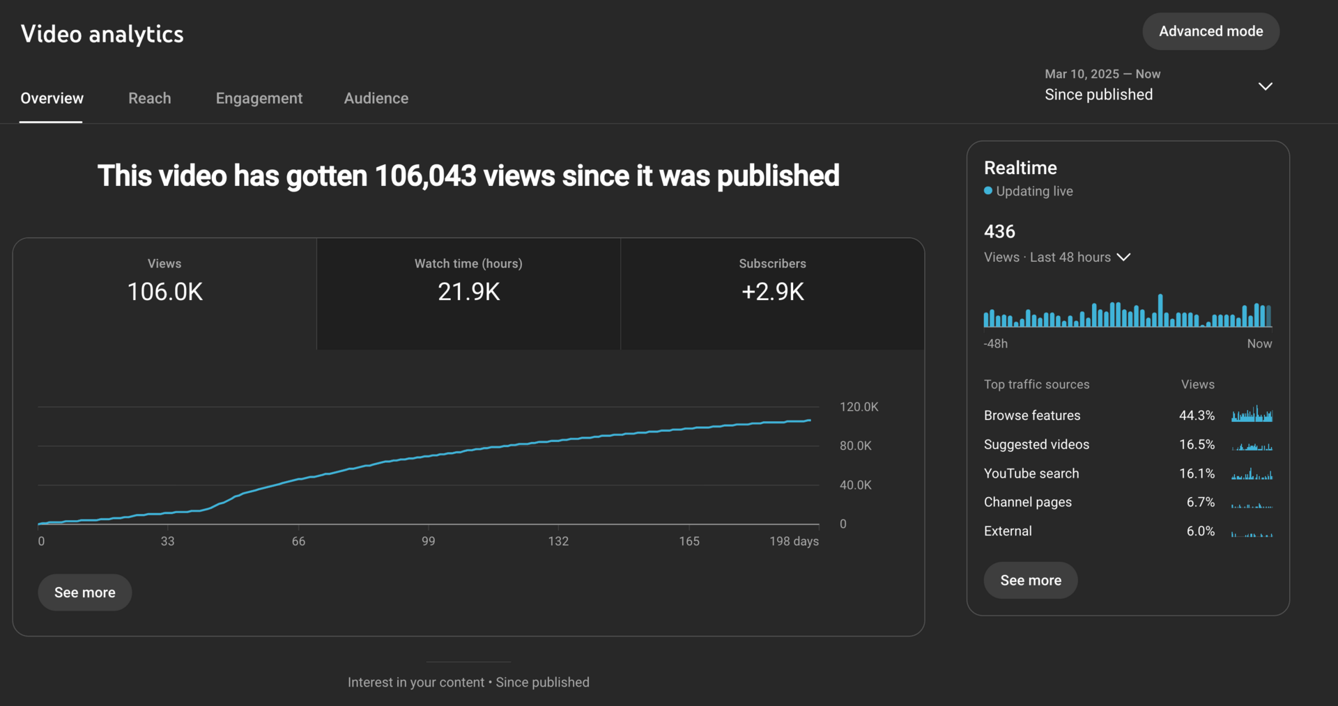 People are still seeing this free course we created for this client from 100+ days ago thanks for search + suggested videos REGARDLESS of how newer videos are doing.