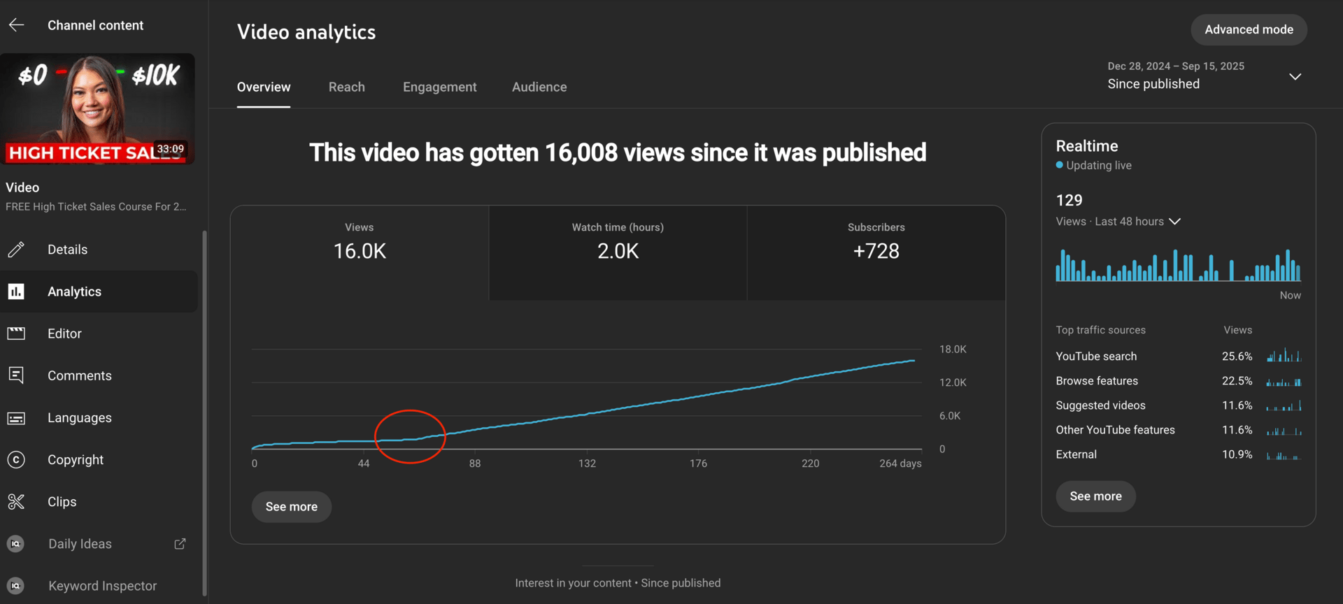 Previously we’ve had clients give up on YouTube prematurely because they didn’t understand this concept (and we didn’t explain it well) only to see videos we created for them absolutely pop off 60-90 days after discontinuing.