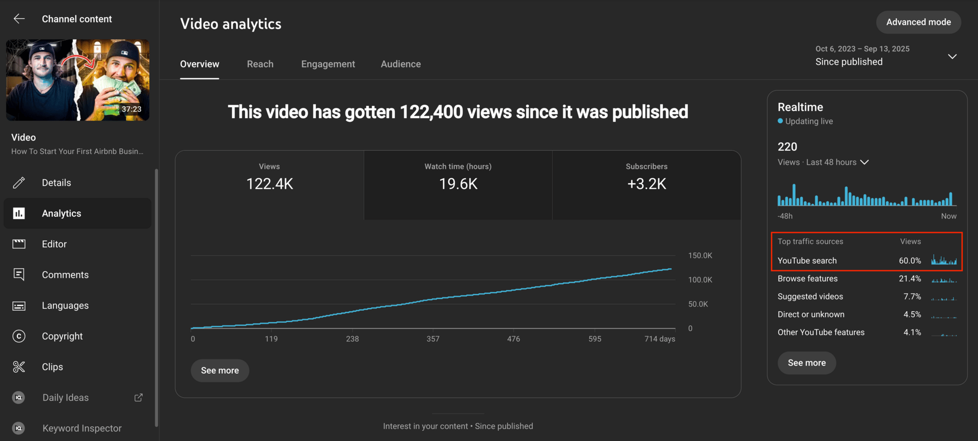 "How To Start An Airbnb Business” 2 year old video, 60% from search